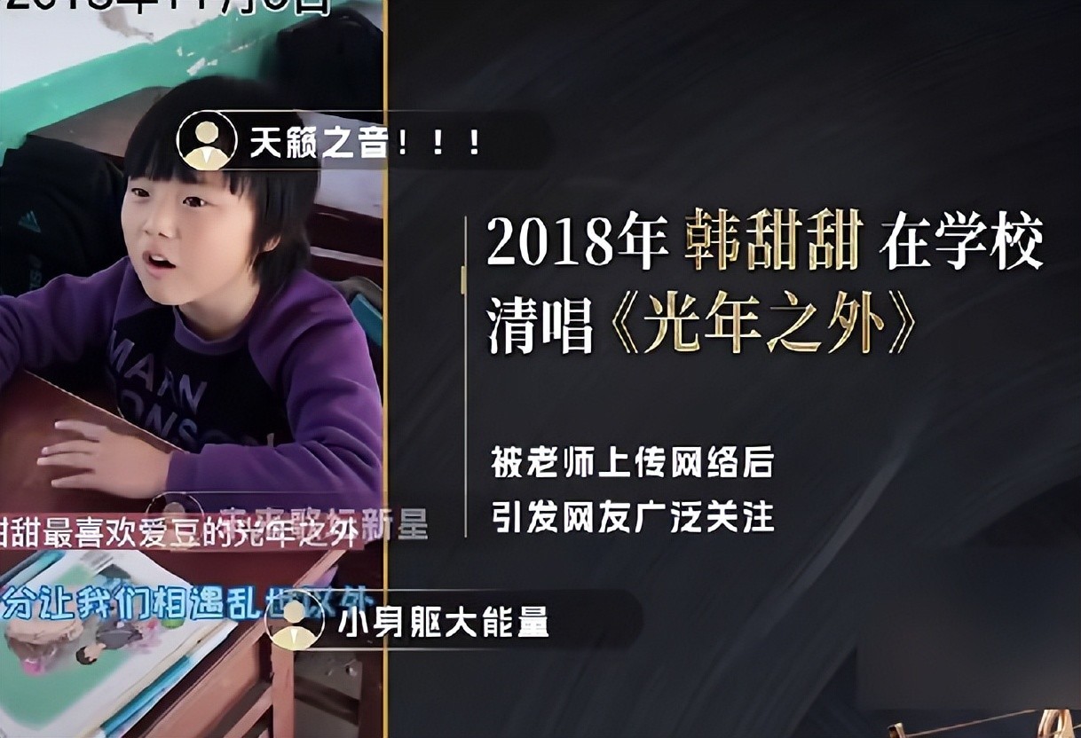 在大部分选秀综艺节目中,自带流量和热度的学员会更有优势,因为节目组不会轻易将他们淘汰,毕竟要靠他们提高节目的热度。在2018年,韩甜甜在学校清唱《光年之外》的视频爆火,如今小女孩已经长大了,成为音乐综艺的常客,评委给出的意见是:细腻有余情感不足,只获得三票被待定。